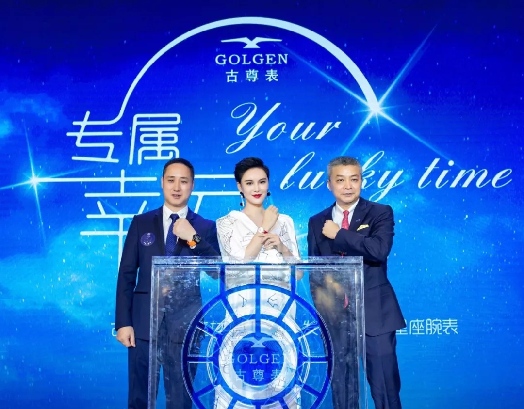 (△左起:深圳市古尊表业有限公司总经理陈胜勇、星座女神莫小奇、中国(深圳)国际钟表展创始人兼筹委会主席/深圳市钟表协会会长朱舜华)
