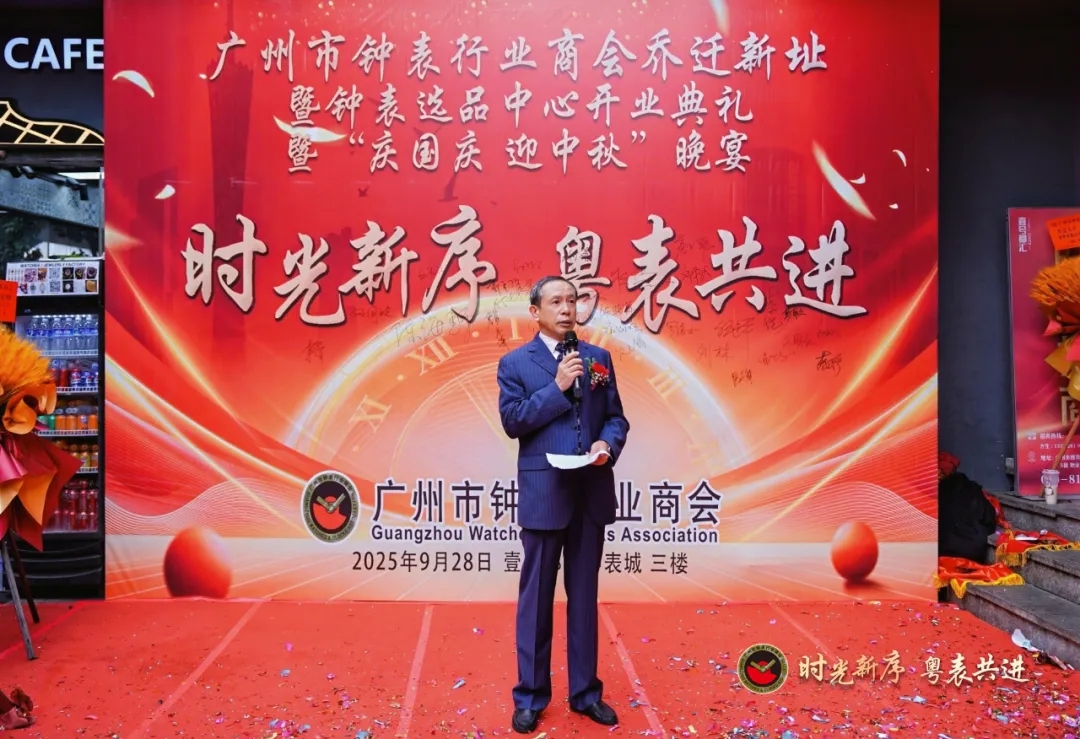 秋光溢彩,盛典如约。2025年9月28日,位于壹号都汇钟表城三楼的广州市钟表行业商会新址嘉宾云集,高朋满座。商会六届九次理事会、乔迁新址揭牌仪式、钟表选品中心开业盛典及“庆国庆·迎中秋”答谢晚宴在此隆重举行。整场活动以“时光新序,粤表共进”为主题,议程紧凑,亮点纷呈,共同谱写了广州钟表行业发展的崭新篇章。