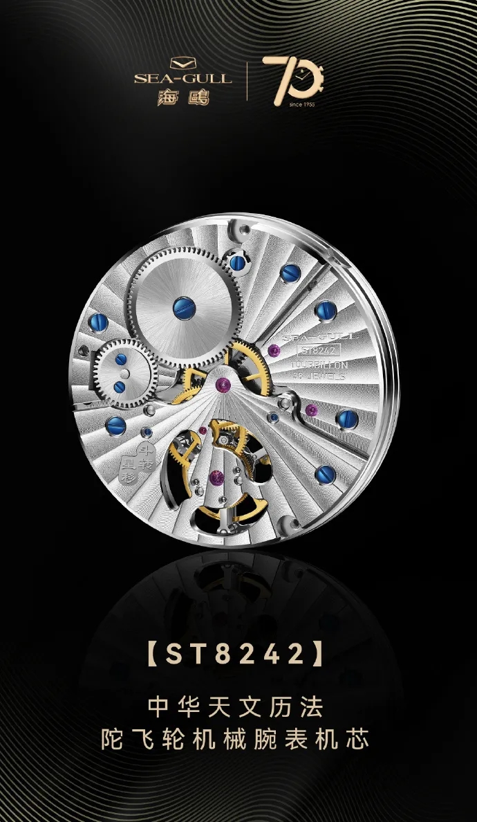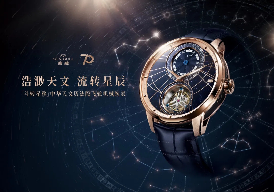 为献礼品牌以及中国制表业的70周年,海鸥表推出大师海鸥系列“斗转星移”中华天文历法陀飞轮机械腕表。