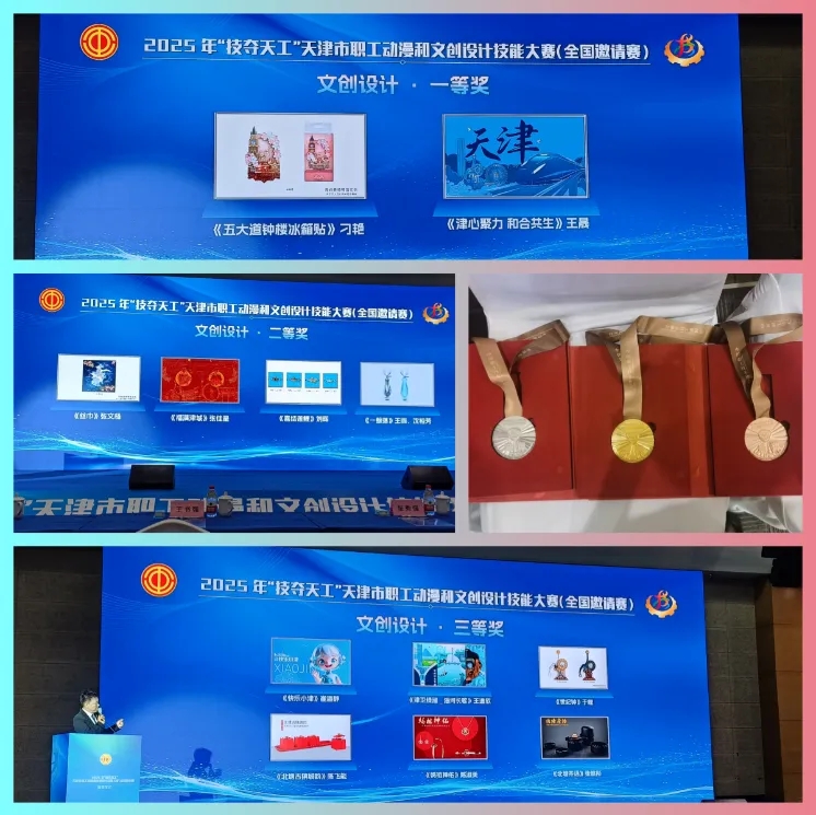 在2025年“技夺天工”天津市职工动漫和文创设计技能大赛(全国邀请赛)的领奖台上,来自天津海鸥文化传播有限公司的职工团队闪耀全场——他们凭借精湛技艺获得金、银、铜三个奖项。这场由中国职工技术协会与天津市总工会联合主办、滨海新区总工会承办、中新天津生态城总工会协办的赛事中,“海鸥”团队的获奖作品如一幅幅流动的津门画卷:既有五大道小洋楼的欧陆风情,又融入海河蜿蜒入海的壮阔景致,将“河海交汇”的城市特质化作兼具实用价值与艺术美感的文创精品。