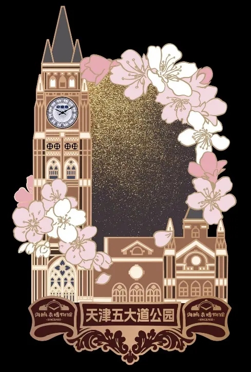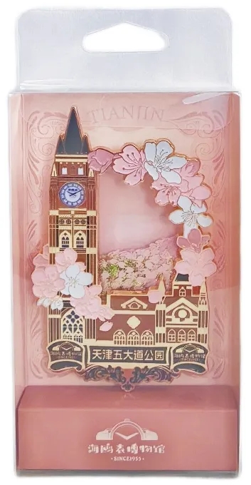 斩获文创组金奖的《五大道钟楼冰箱贴》以今年天津城市新地标——吸引无数游客的五大道公园钟楼为创意焦点,以钟楼为形象制作的冰箱贴融入五大道著名海棠元素,将备受瞩目的地标与重点文旅元素相结合。还原由海鸥制造的钟楼四面钟同时,中间设计了流沙工艺,朵朵花瓣和彩砂散落下来营造出花瓣飘落的氛围感,增加了冰箱贴的可玩性和视觉效果,充分展现天津建筑文化与这座城市的浪漫格调。