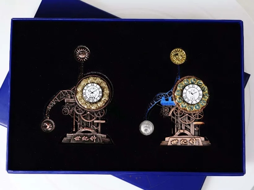 天津始“钟”“响”你!2000年迎接21世纪天津市地标建筑世纪钟落成,25年来伫立守护每一位身处天津的人,2024年由海鸥表业集团维护后,久违的世纪钟声再次响起,成为天津文旅的重点宣传的城市形象。为了致敬经典和迎接新颜,荣获铜奖的作品《世纪钟》分别以升级改造前后的世纪钟为原型设计了两款冰箱贴,展现一代人心中的天津城市记忆与如今人们对天津城市新形象的认识,同时创新设计出扫描世纪钟背后即可听到世纪钟的报时声音,成为将天津特色工业文化、建筑文化、城市文旅传播出去的最好载体与城市礼物之一。