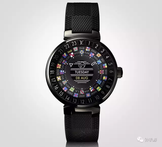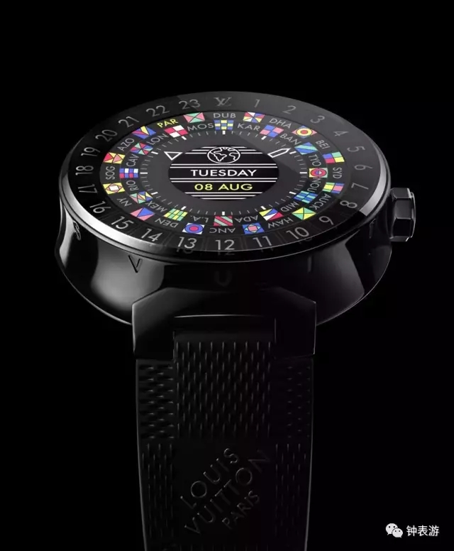 路易威登智能腕表Tambour Horizon的表圈上是24小时刻度显示,也有双时区功能,随时戴着它轻松跨国旅行,掌控自己的时间