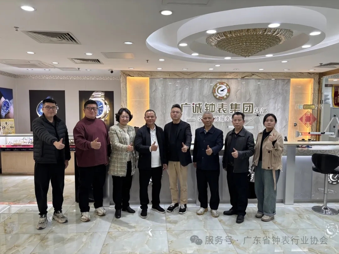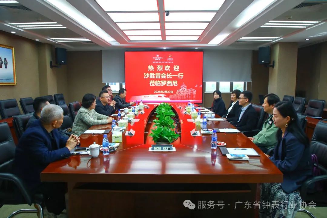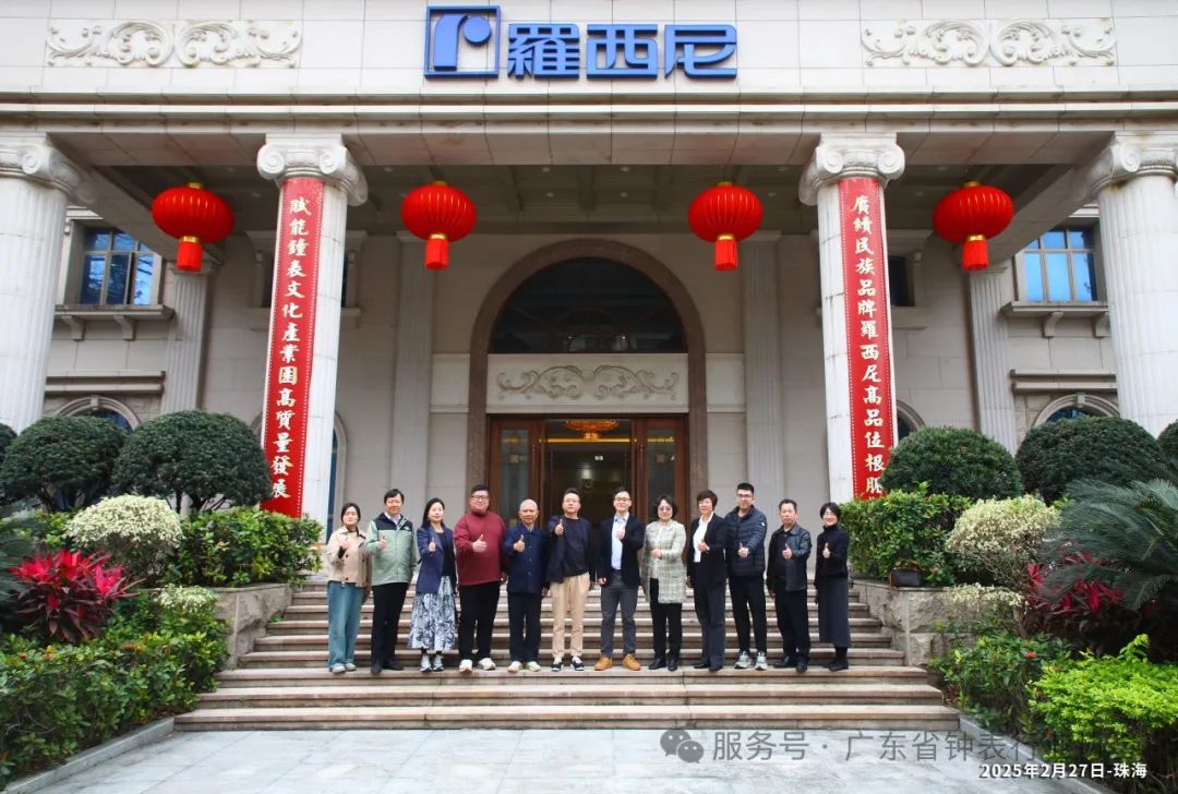 2025年2月27日,广东省钟表行业协会 会长沙胜昔、执行会长黄穗葵、副会长邹凯浪、瑞士独立制表人学会(AHCI)中国籍成员谭泽华等一行赴珠海罗西尼表业有限公司和珠海广诚钟表集团有限公司走访,深入了解会员企业的经营和发展情况,共同探讨钟表行业发展趋势,推动技术创新与品牌建设。