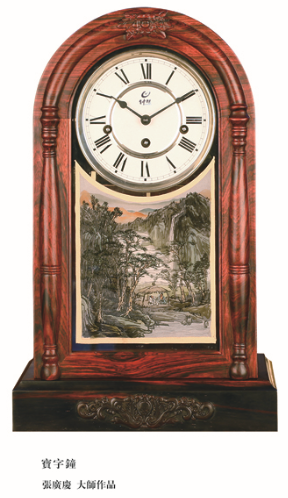 “美时嘉”聘请近代中国现代钟表发祥地——烟台钟表老工匠,挖掘传统制造工艺,推出的限量版“寳”字礼品钟,钟的头部采用拱形设计,钟柜借鉴广钟、苏钟和西洋钟表现手法,形成了自己独特的民族风格和地域特色。并聘请中国工艺美术大师、鼻烟壶专业委员会主席、中国古典钟与文化中心名誉主任张广庆先生在钟门设计内画彩绘,首创了将内画艺术引入钟表装饰,是历史、文化和艺术的有机融合,是馈赠的珍品。