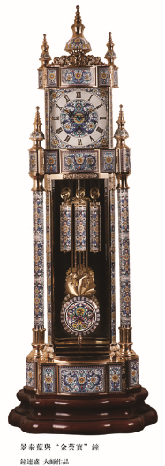 “美时嘉”推出的限量版的“金葵宝”景泰蓝落地钟,刚刚面市,就受到了收藏家的喜爱。该款钟由中国工艺美术大师、国家级非物质文化遗产传承人、中国古典钟与文化研究中心特约艺术顾问钟连盛先生设计创作,以“葵花向阳”为主题,继承了恢宏大气的传统宫廷艺术造型,融入了现代审美元素,以辉煌胜金、温润胜玉、光泽胜珠、细腻胜瓷的绝妙工艺,不仅体现了景泰蓝作品的整体面貌,而且代表了当代国内珐琅工艺的最高水准。是集观赏、收藏、实用为一身的景泰蓝珍品。落地钟采用景泰蓝工艺制造,是钟表艺术几个世纪以来来的首次成功尝试,树立了钟表文化与艺术发展的里程碑。