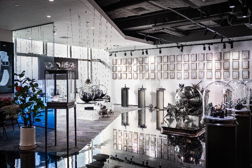 在林总的全程陪同下,专家团队先后参观了贝伦斯制表工坊、打磨工坊及CNC加工工厂,沉浸式感受现代机械制表的匠心与科技融合之力。参观过程中,林总详细介绍了贝伦斯自2012年创立以来的发展历程,从早期深耕原创机械设计,到2020年凭借“转子”“无极”腕表双获日内瓦高级钟表大赏(GPHG)提名的突破,再到如今构建涵盖自主研发、精密加工、手工打磨的全链条生产体系的发展轨迹。在制表工坊,专家们近距离观察了腕表机芯的组装流程,对贝伦斯自研BM01、BM02机芯的精密结构表示关注;在打磨工坊内,工匠们对零件表面的极致抛光工艺,让深耕古钟表修复的专家们产生强烈共鸣,双方就手工技艺的传承与标准化进行了细致交流。CNC加工工厂的智能化设备与精准加工能力,则展现了贝伦斯将现代技术与传统制表结合的实践,为古董钟表零件的复刻与修复提供了新的技术参考。