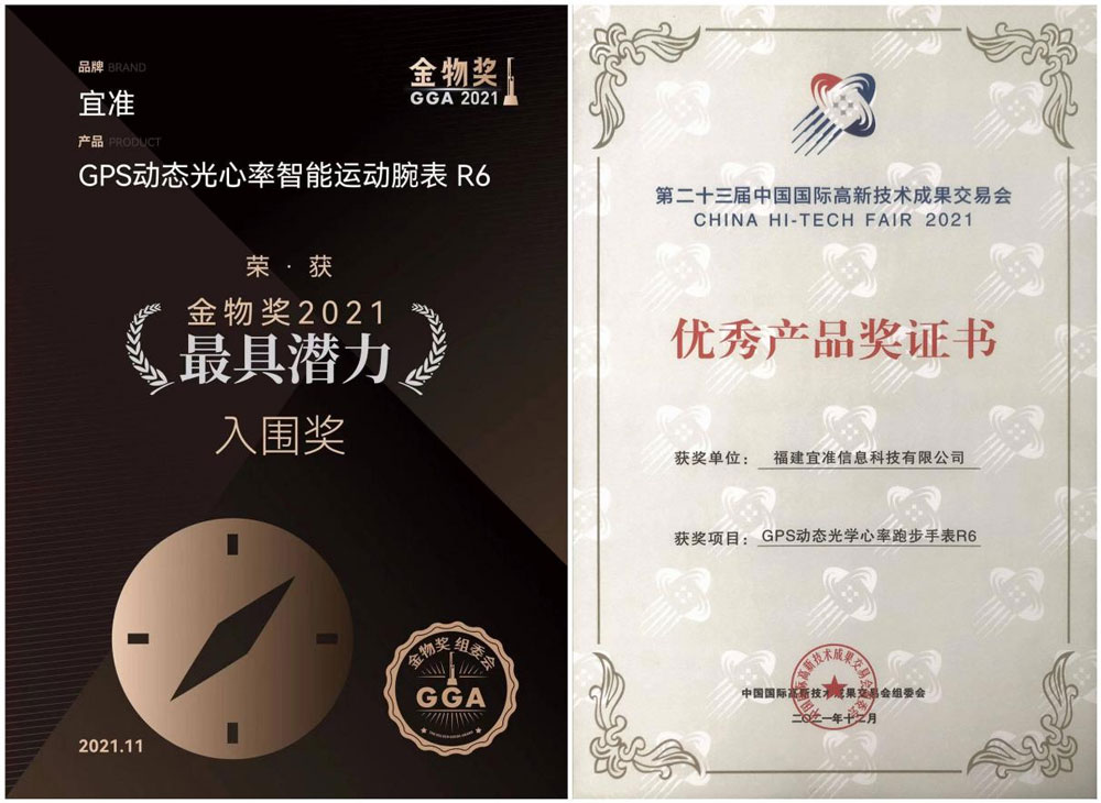作为拥有省级企业技术中心、省级工业设计中心的国家高新技术企业,宜准累计持有工业设计专利20项、实用新型专利26项、软件著作权36项,并先后获评中国轻工行业钟表十强企业、国家体育产业示范项目等。
