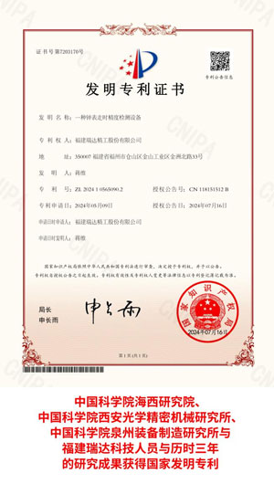2023年6月29日,由中国科学院海西研究院、中国科学院西安光学精密机械研究所、中国科学院泉州装备制造研究所与福建瑞达全体科技人员组建的 “产学研用” 联合攻关团队,历时三年潜心研发完成的中国科学院重点研发项目 ——“高精密指针式手表装配质量自动化检测系统研发”,顺利通过中国科学院组织的综合绩效评价与验收,该项目一举攻克了全球高精密钟表制造领域长期悬而未决的世界性技术难题,核心技术成果彻底填补了该领域的国际技术空白。