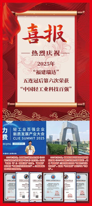 2025年7月20日,福建瑞达与海尔集团、美的集团、格力集团等各行业龙头企业荣获“中国轻工业科技百强企业”。这是福建瑞达继2019年、2021年、2022年、2023年荣获“中国轻工业科技百强企业”后第五次荣获此项殊荣。