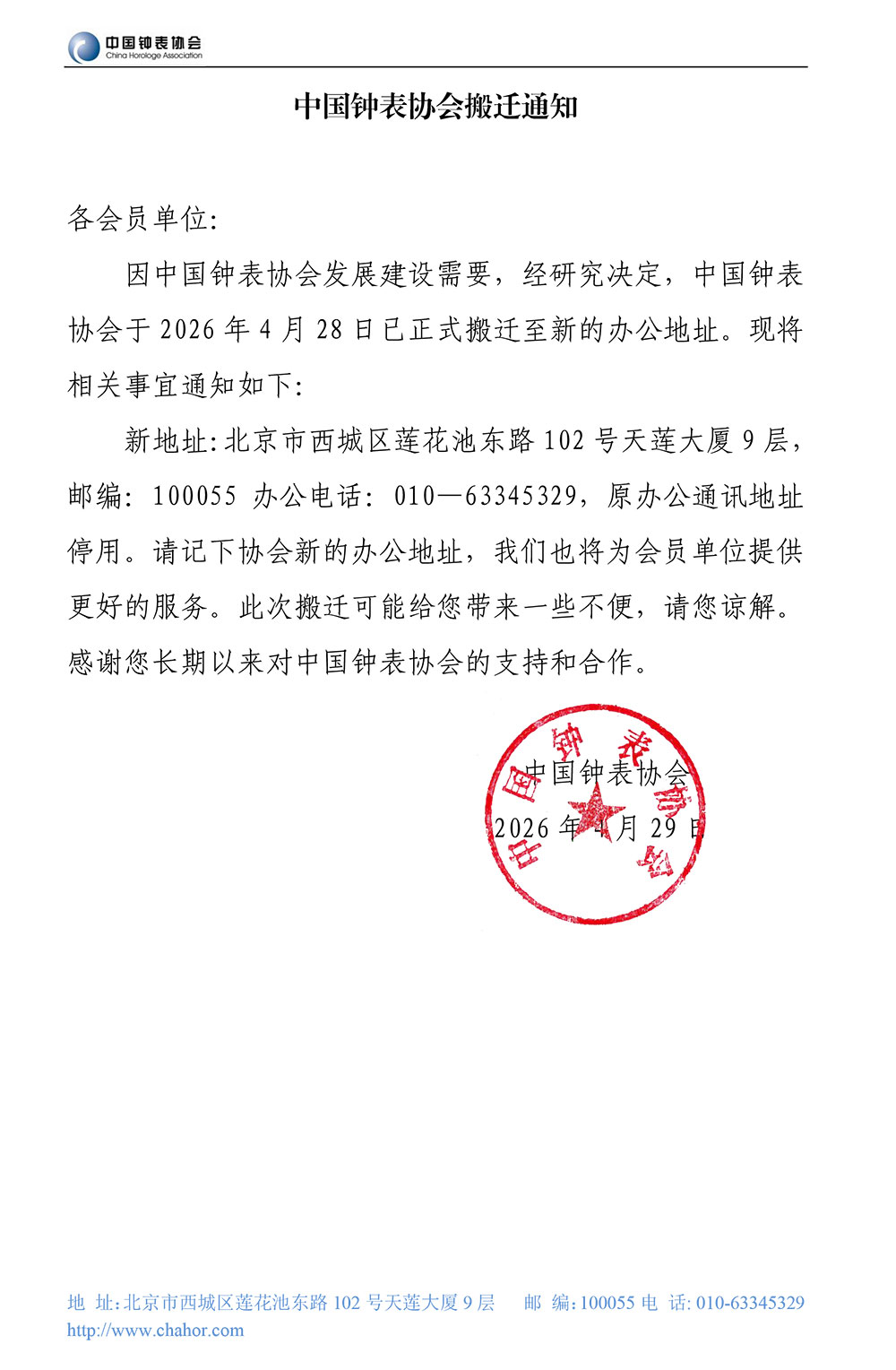 发布时间:2026-04-29 作者:协会秘书处 来源:中国钟表协会