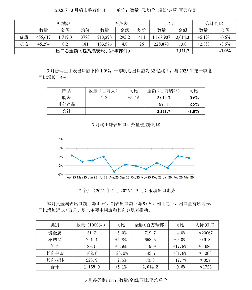 关注:40 发布时间:2026-04-23 作者:协会秘书处编译 来源:瑞士钟表工业联合会