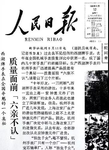 11月,ZHZ型西湖手表荣获全国机械手表质量考核第一名