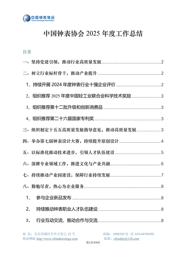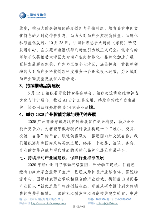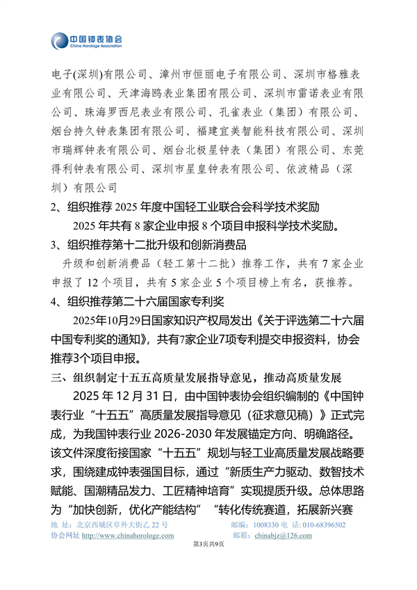中国钟表协会2025年度工作总结