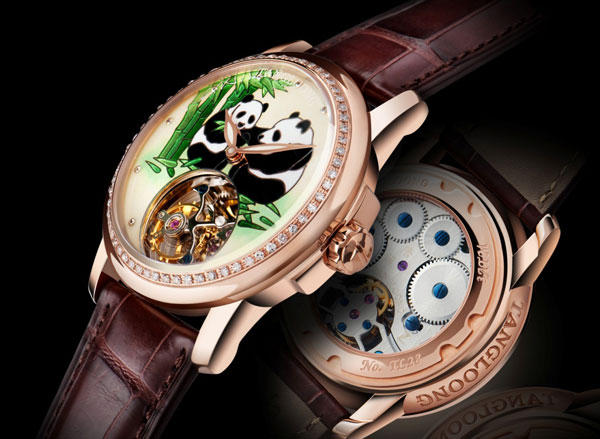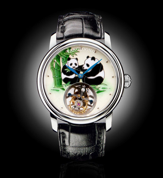 近日,由中国新锐珍藏级文化手表品牌“唐龙”表倾情打造的“国宝大熊猫手表”在中华世纪坛正式问世。该手表特别以由大陆赠台大熊猫“团团、圆圆”为原型设计创作表盘主图,采用积淀数百年的民族工艺“珐琅”技术和999纯银材质打造表盘,成功打造了我国第一款“国宝大熊猫珐琅陀飞轮腕表”。唐龙表创始人袁征表示,“国宝大熊猫手表”不仅承载了海峡两岸民众心连心并期盼早日团圆的世纪心愿,更满足了广大表迷拥有一只珍藏级国宝大熊猫稀世腕表的收藏夙愿。