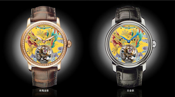 此外,唐龙“国宝大熊猫珐琅陀飞轮腕表”在中华世纪坛正式面世的同时,由唐龙表同步精心研制的“金龙耀世珐琅陀飞轮金钻表”、以及采用徐悲鸿大师“奔马”艺术巨作打造的“2014生肖马年陀飞轮金钻表”也一同亮相。全国咨询订购专线400 883 9282